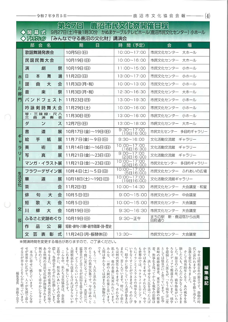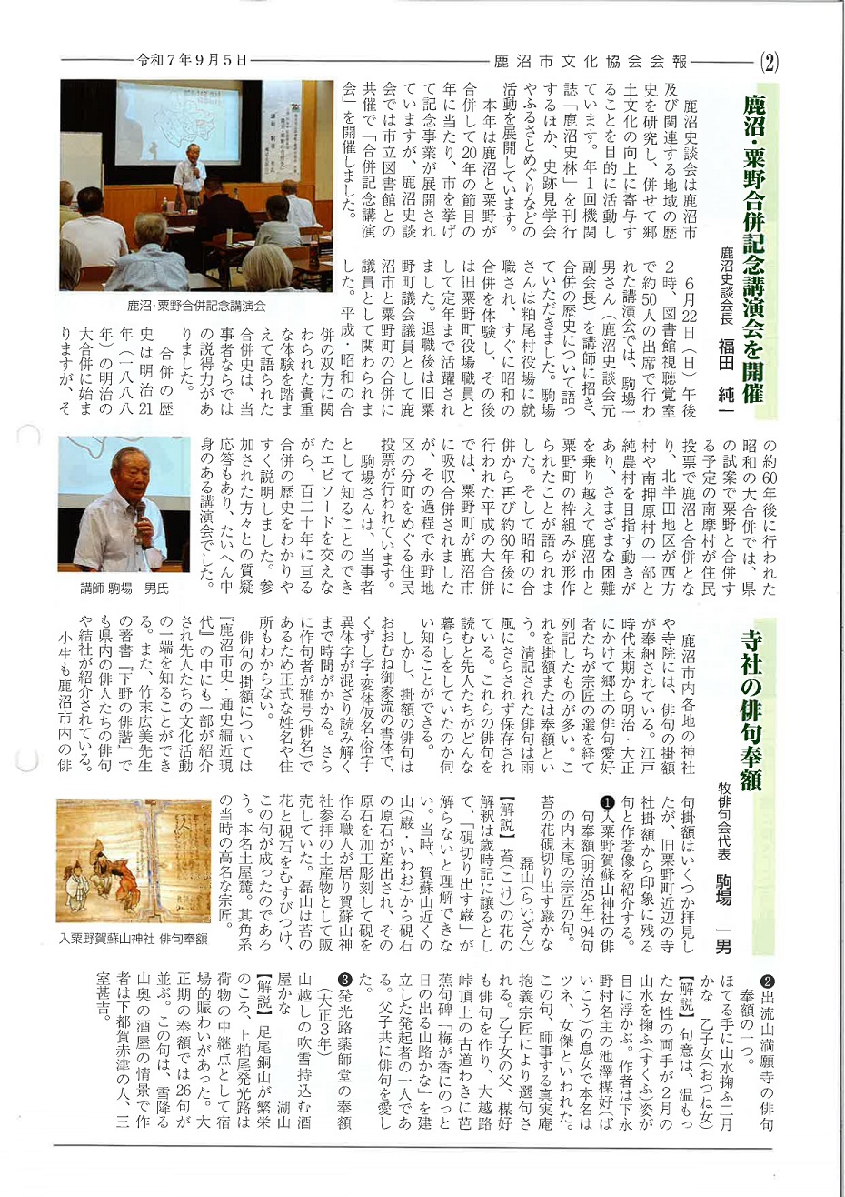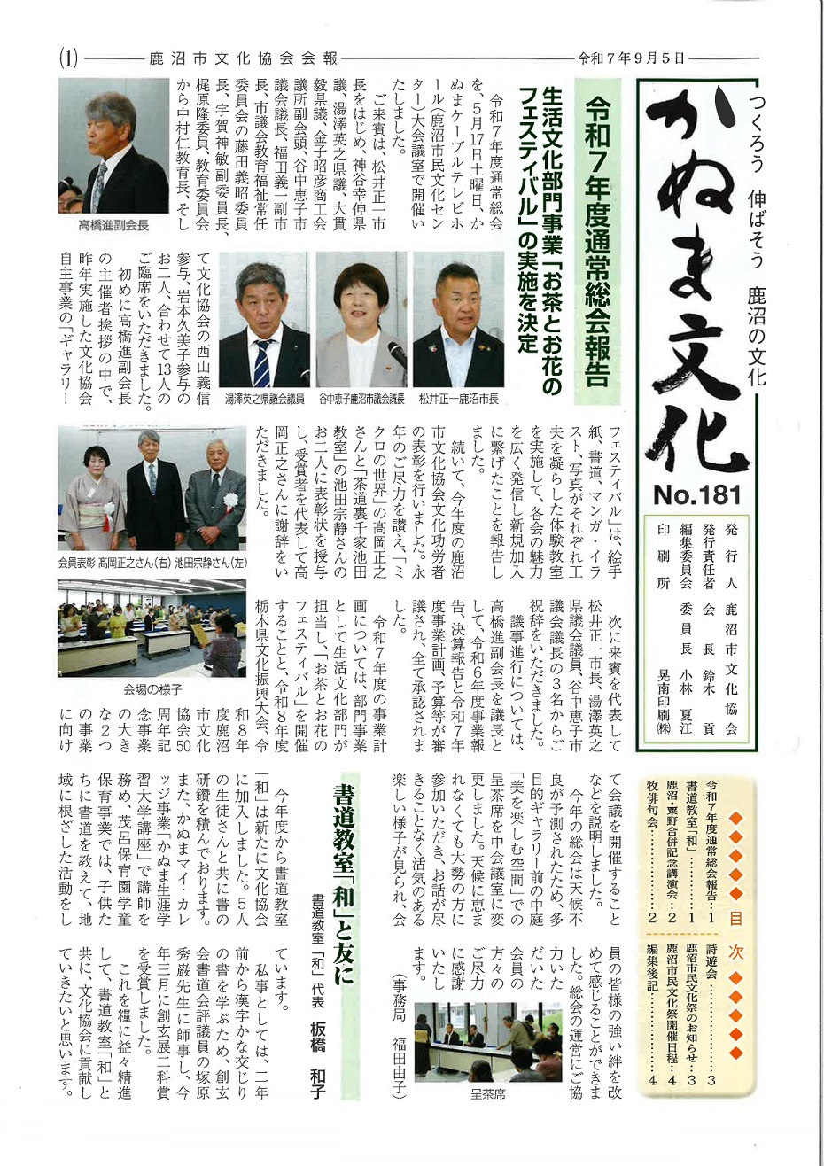 会報「かぬま文化」第181号(令和7年9月5日発行)