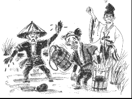 生子渕<加園>![]() 「なんだやこの石、へんちくりんな形だな。その上いくつも穴ぼこがあいてんぞ。」 「気味わりい石だな、その穴ぼこの奥に、何かもぐっていねえかや。」 みんなは、石をかこんでガヤガヤと勝手なことを言い合った。そのうちにとしよりのひとりがその石の泥をよく荒いおとしてみると、石は青っぽくて艶がありその上、 七つも穴があいていた。 としよりは、だまってその石を眺めていたが、急に思い出したように話しはじめた。 「あのなあ・・・、今から五・六年前だったと思うけどなあ。この沼のあたりで赤ん坊をだいた若い女の人がうずくまっていたんだよ。その女の人は毎年石裂参りにきていたらしく、 この土地の様子に詳しいようだった。 でもなあ、おれがなにを聞いても黙っていて、しまいには逃げるようにしてあの草むらん中へはいっちまったんだよ。」 「ほんじゃそら、その女が赤ん坊をこの沼に捨てたんじゃねえかや。」 「すると、あの声は赤ん坊の泣き声か?」 「それじゃ、この石は・・・・。」 若者たちは気味悪そうに言った。 「まあ、いずれにしても、この石を供養してみんべじゃねえか。」 と、としよりは言った。そのことばに村人たちも、 「そうすることがよかんべ。とにかく宝蔵院に持って行って供養してもらうことにすんべえ。」 と言って、さっそく供養してもらった。 そののち、村人たちが金を出し合って、お地蔵様を作らせ、沼の底から出て来た青くて穴のあいている石をお地蔵様にだかせてお堂に安置した。すると「オボコ、オボコ」 という不思議な音はぷっつりと聞こえなくなった。 それから、この沼のあたりを「生子渕」と言うようになり、この集落の人たちは、今でも毎年11月23日にはお堂の前に集って供養を続けている。 この内容は、鹿沼市玉田町にお住まいの黒川フミさんが「続子どものための鹿沼のむかし話」の中で、まとめられたものです。 |